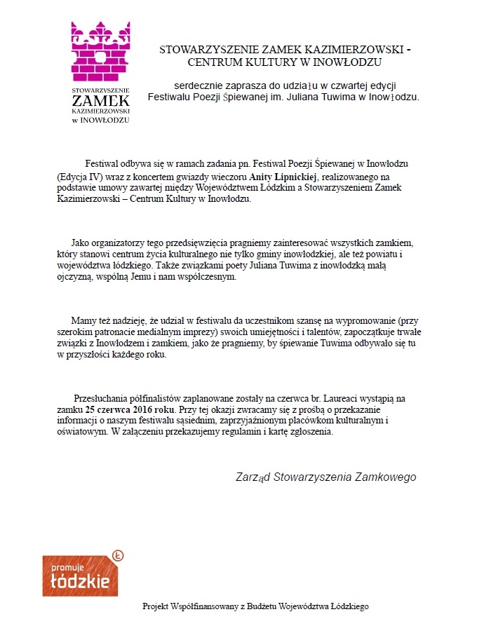 w IV edycji FESTIWALU POEZJI ŚPIEWANEJ IM. JULIANA TUWIMA.
