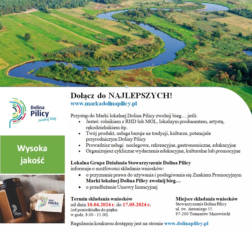 Marka Dolina Pilicy - Ogłoszenie o naborze 2024/MDP