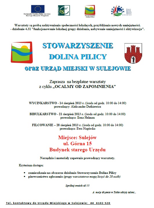 Warsztaty są próbą uaktywniania społeczności lokalnych, przybliżania nowych umiejętności. - działanie 4.31 "funkcjonowanie lokalnej grupy działania, nabywanie umiejętności i aktywizacja".